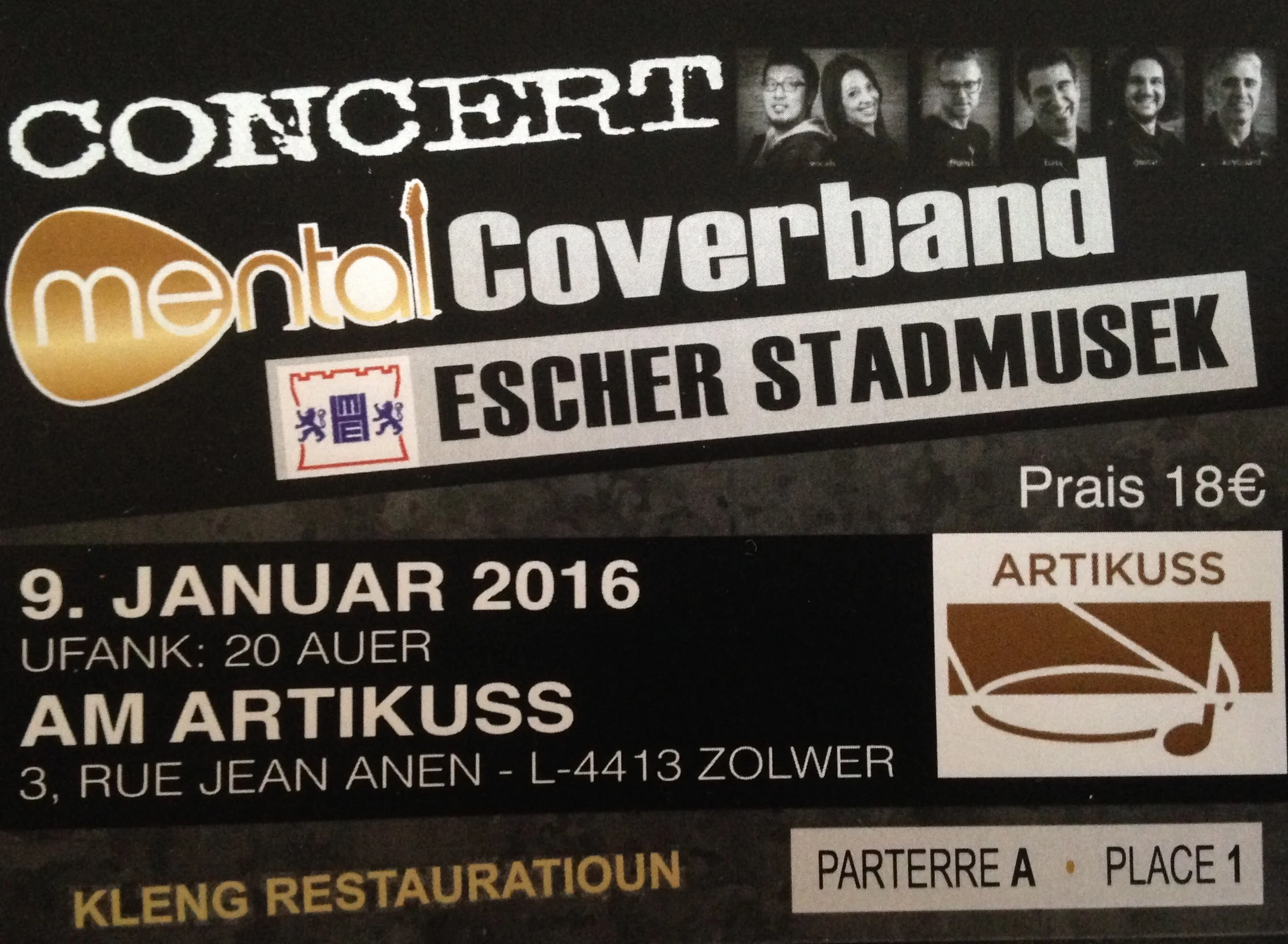 Au nom du groupe Mentalcoverband on vous remercie pour le grand succès des 2 concerts au théatre d'esch qui sont SOLD OUT il y a un concert supplémentaire au ARTIKUSS à Soleuvre le 9 janvier 2016 à 20 heuresRESERVATION TEL 621 330 236